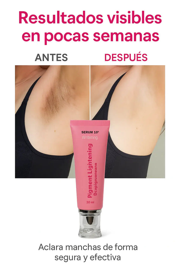 Este suero elimina las manchas oscuras en axilas y zona V de manera segura y efectiva. Recupera tu confianza al lucir una piel más uniforme y radiante, sin irritaciones.